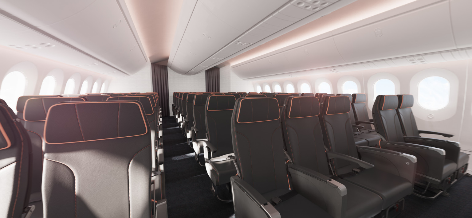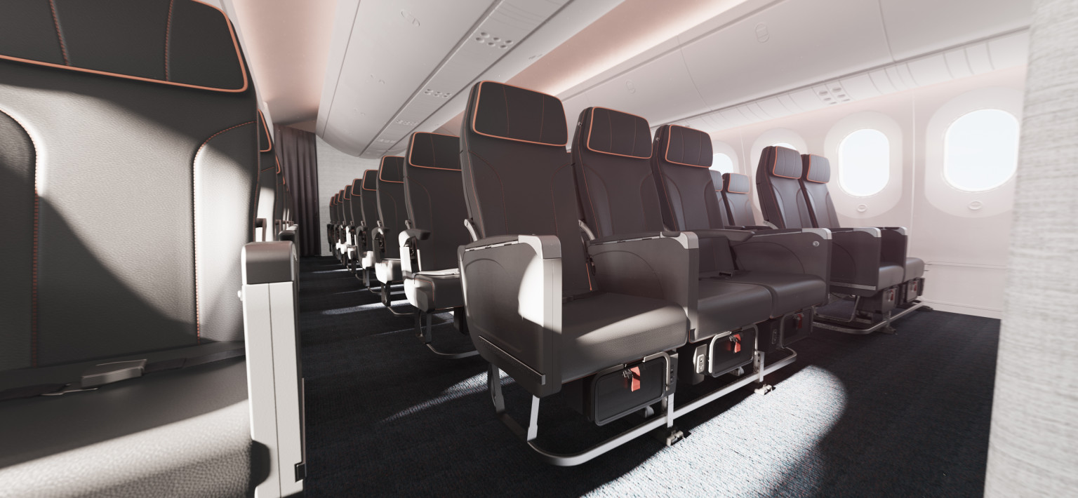 The new Air Japan cabin interior feels elegant, calm, and considered. It also has a modern and understated look that is underpinned by the dark grey seat design moving it away from traditional-looking economy seats.