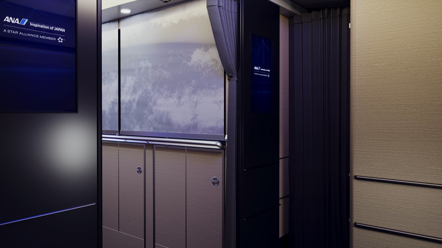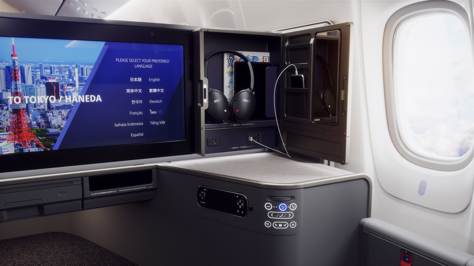 The all-new First Class cabin, features the most significant upgrade ANA has made in this cabin for a decade. Designed with impeccable attention to detail, “THE Suite” is the most spacious fully-enclosed seating ever seen on an ANA aircraft. New features include the addition of privacy-enhancing doors as well as a crystal-clear 43 inch monitor that is the world’s first 4K personal monitor on a commercial airliner. THE Suite also boasts a movable partition which can be adjusted upon request to pair seats, as well as universal PC and USB ports.