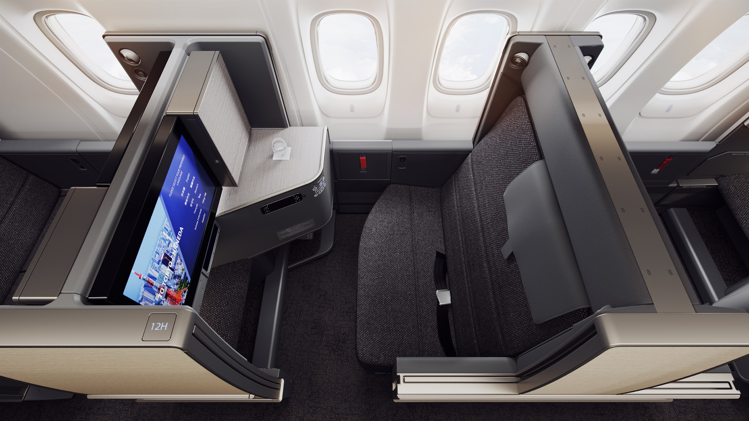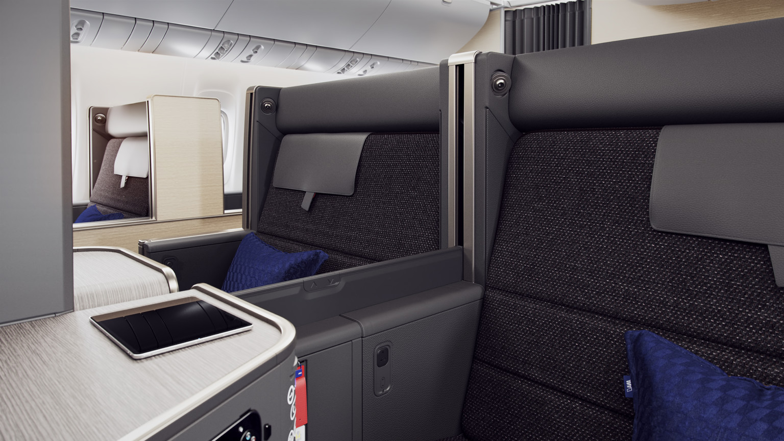 The revolutionary new Business Class seat features interlocking forward and aft facing ottomans to create one of the widest seats and beds in the sky. The large flatbed surface creates the ability to lounge or socialise in your own space like no other Business Class seat. THE Room also incorporates flexible privacy with the inclusion of sliding doors and a sliding screen to the aisle. The new seat also has a 4K - 24” monitor.
