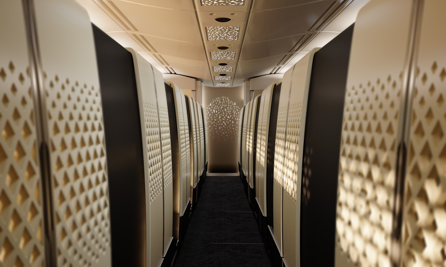 Giving back significant real-estate to the passenger. The single central aisle is a breakthrough in cabin layout design relinquishing significant space for the passenger by unlocking the potential for wider suites and a unique seat configuration.
