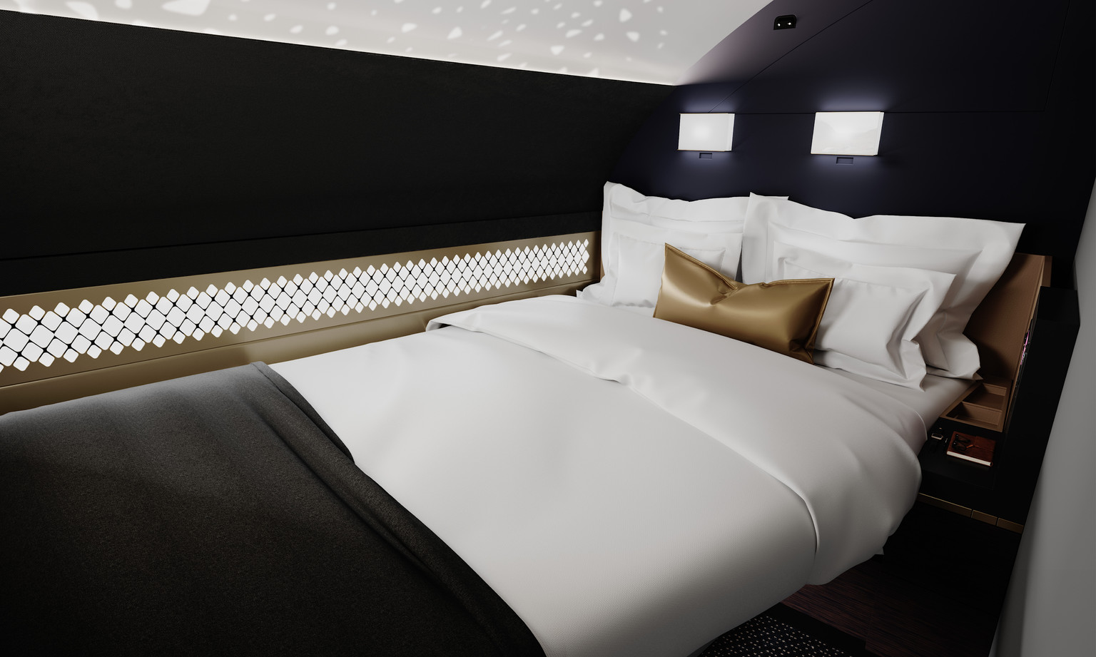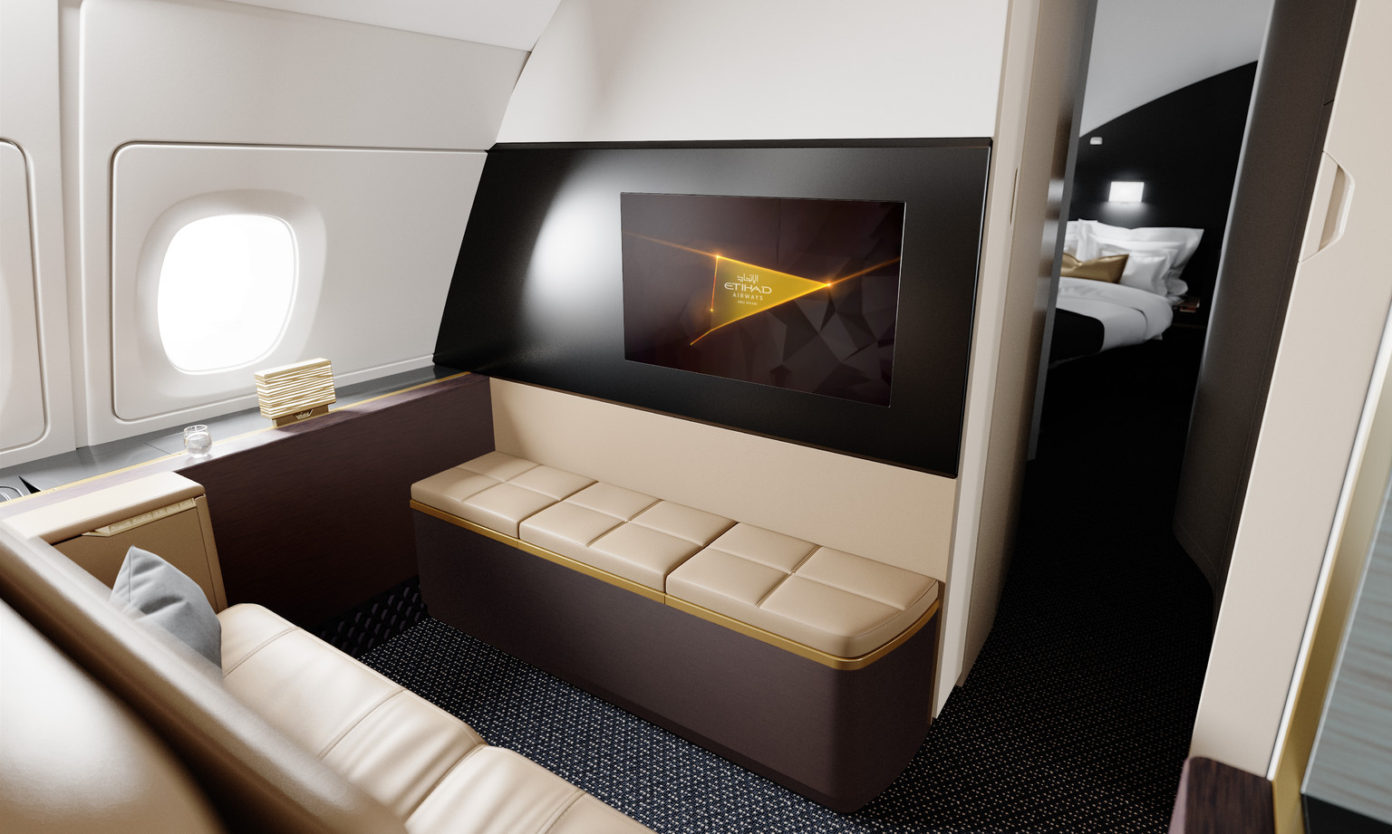 A class above First Class. The first new class of travel since the introduction of Premium Economy in 1991 and the world’s first private 3 room VIP suite on a commercial aircraft. With over 125 square feet of space offering a lounge, bathroom with en-suite shower, and a separate double bedroom.